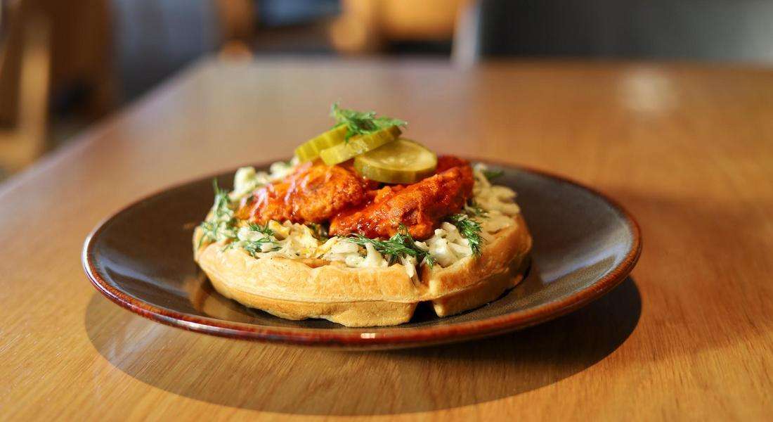 - Chicken and Waffles: Fried chicken with Turbo hot sauce, buttermilk slaw, dill pickles - $21