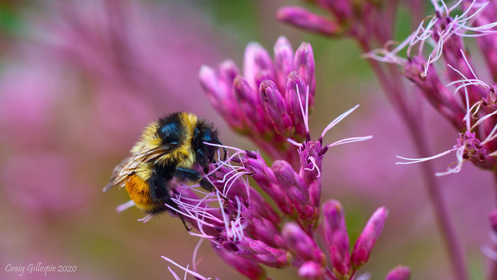 Joe Pye Weed (Eupatorium purpureum) is a wonderful late-summer herbaceous perennial that is at its finest from mid-August through fall. If you're looking to create a pollinator-friendly garden, Joe Pye is an absolute bee magnet!