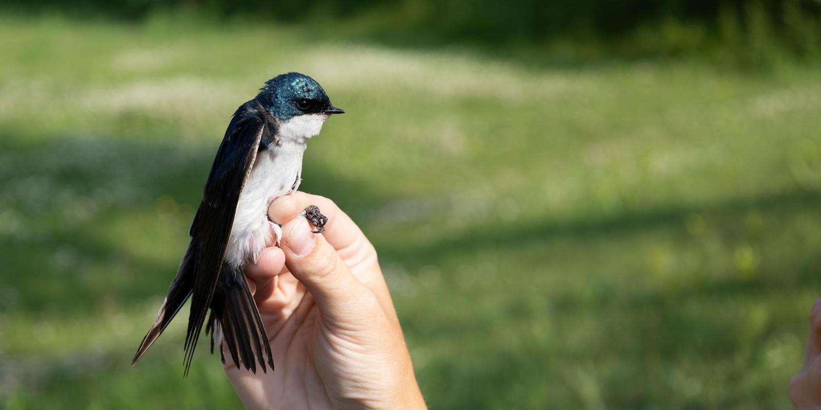 This year, we invited Kevin Fraser's team from the Avian Behaviour and Conservation Lab at the University of Manitoba to come band the tree swallow family occupying one of our nest boxes in the Zoo.