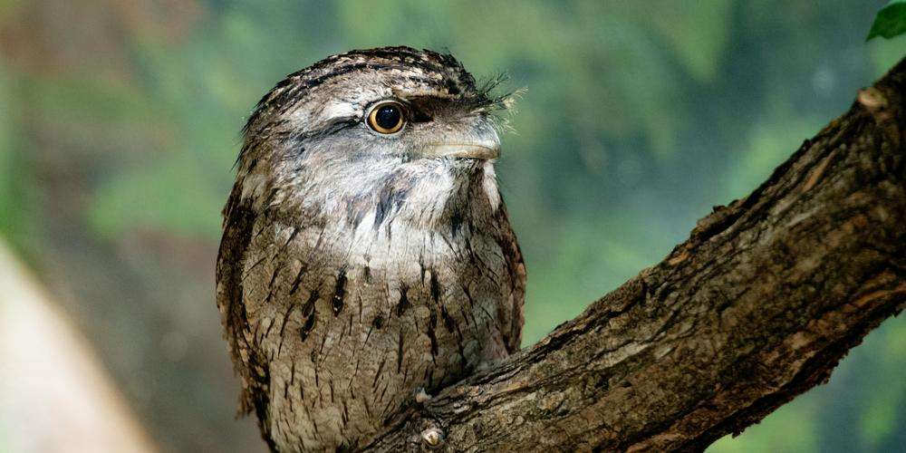 Fun fact: Tawny frogmouths are nocturnal and spend their days motionless, sleeping with one eye open. If a predator comes near they will call out a warning, then throw their beak to the sky and remain motionless in order to perfectly camouflage as a dead branch on a tree.