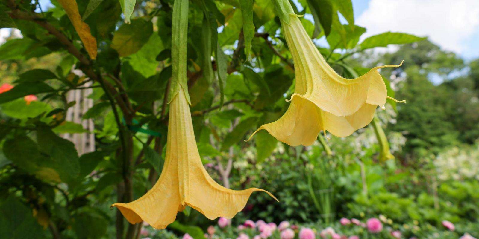 If you haven’t made your way over to the English Garden this summer, this is your sign to visit and check out our beautiful flora! Among them is the striking Brugmansia sanguinea, or the angel’s trumpet flower. Learn more about them and their interesting backstory below: