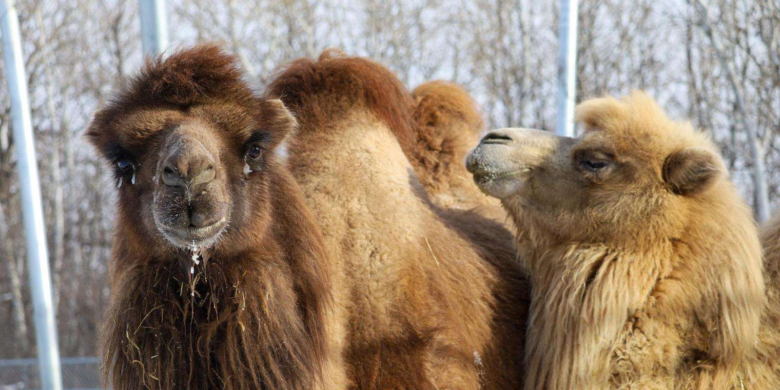 - Our camels have two thick layers of fur that help trap heat close to their bodies and stay warm against the snow and wind.